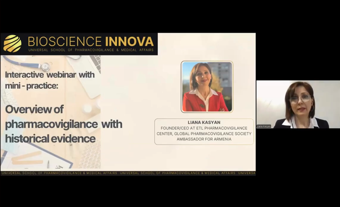 Спікер-ментор: Ліана Касян: засновник/генеральний директор ETL Pharmacovigilance Center, посол Global Pharmacovigilance Society у Вірменії, член Міжнародного товариства фармаконагляду (ISoP), член Міжнародної редакційної ради журналу «Фармаконагляд та дослідження ліків» (JPADR), рецензент магістерських дисертацій охорони здоров’я Єреванського державного медичного університету, член правління Вірменської асоціації фахівців доказової медицини (AASEBM), співзасновник НВО «Не нашкодь» у сфері охорони здоров’я.